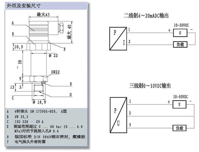 4...20mA(兩線),0...10VDC(三線) |