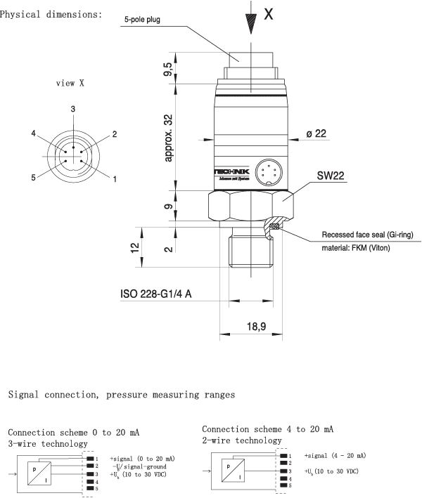 Hydrotechnik HT-PD Pressure sensor's 5 Pin assignment order NO.