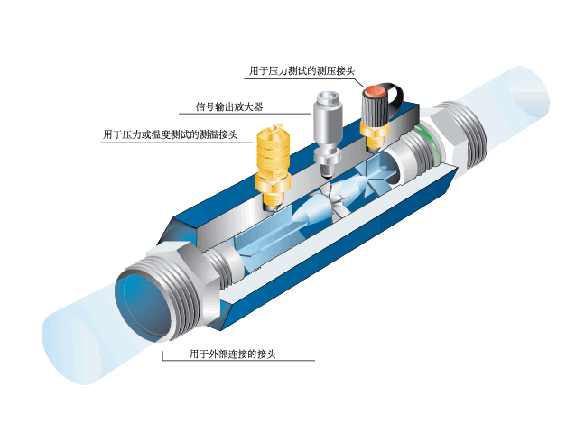 | 流量測(cè)量渦輪其實(shí)就是一個(gè)流量計(jì)。hydrotechnik渦輪流量計(jì)RE4的渦輪葉片由流動(dòng)的液流來軸向驅(qū)動(dòng),轉(zhuǎn)速與流速成正比。通過渦輪葉片的旋轉(zhuǎn)來切割磁力線,從而每次產(chǎn)生脈沖信號(hào)并用一個(gè)非接觸的傳感器拾取該信號(hào),這些脈沖信號(hào)可以直接顯示在與流量計(jì)連接的測(cè)量儀表上。渦輪流量計(jì)RE4系列的流量計(jì)的另一個(gè)優(yōu)點(diǎn)是帶有兩個(gè)監(jiān)測(cè)點(diǎn),可同時(shí)測(cè)量壓力和溫度。 | |