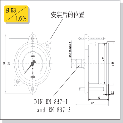 HydrotechnikØ 63機(jī)械式壓力表訂貨號(hào):