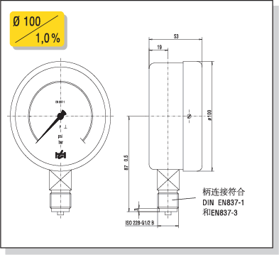 HydrotechnikØ 100機(jī)械式壓力表訂貨號(hào):